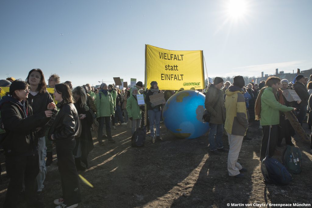 Es kam uns fast so vor, als wäre die Sonne Demokratin – so hell und strahlend stand sie an diesem 8. Februar über der Theresienwiese und den vielen Menschen, die gekommen waren. So kurz vor der nächsten Bundestagswahl und nach der Aktion von demokratischen Parteien, sich mit rechts außen zu verbünden, fanden es Viele an der Zeit für die Demokratie einzustehen. Und das waren sehr viele – mehr als 250.000 Menschen, die friedlich demonstriert haben.