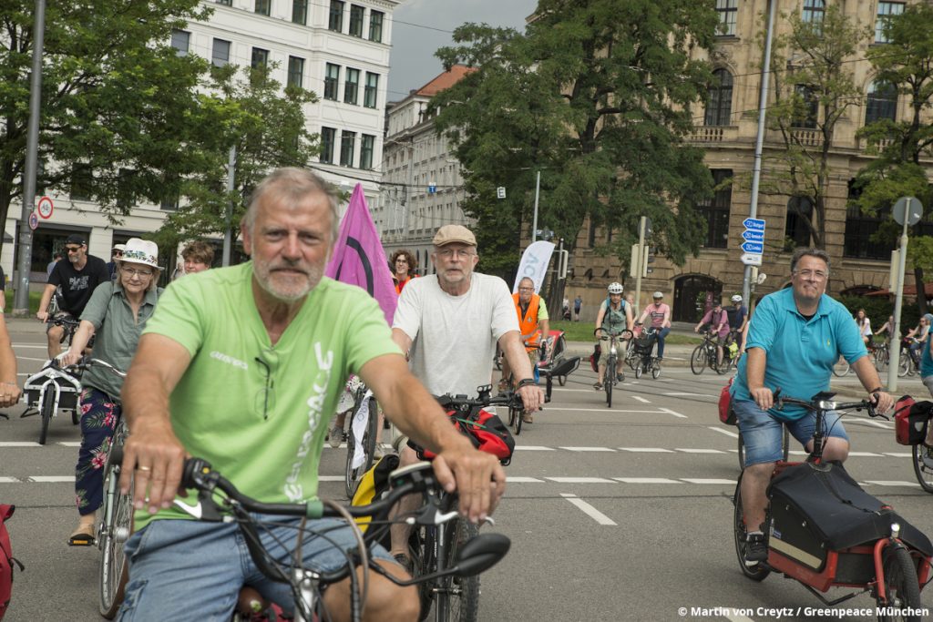 Dagegen haben wir am 20. Juli 2024 gemeinsam mit anderen Organisationen der Umwelt- und Klimagerechtigkeitsbewegung am Stachus in München protestiert. Es gab einen Fahrradcorso als Zubringer zur Demonstration und schließlich eine Kundgebung mit vielen kreativen Beiträgen. Unter anderem wurden die durch klimaschädliche Subventionen geschaffenen Machtverhältnisse in der Gesellschaft veranschaulicht, indem „Mr. Fossil“ in einer Tanzvorführung die Tänzer:innen „umgebracht“ hat. Beim Fortschreiten der Erderhitzung kann „Mr. Fossil“ mit seinem durch fossile Energien erworbenen Reichtum jedoch auch nichts mehr ausrichten. Besser wäre es auch in der realen Welt, wenn alle Menschen gleichermaßen helfen würden, das Klima zu schützen. Dies wurde in der Vorführung dadurch gezeigt, dass sich alle Teilnehmer:innen des „Die-Ins“ gegenseitig beim Aufstehen halfen und schließlich (wieder) gemeinsam tanzten.