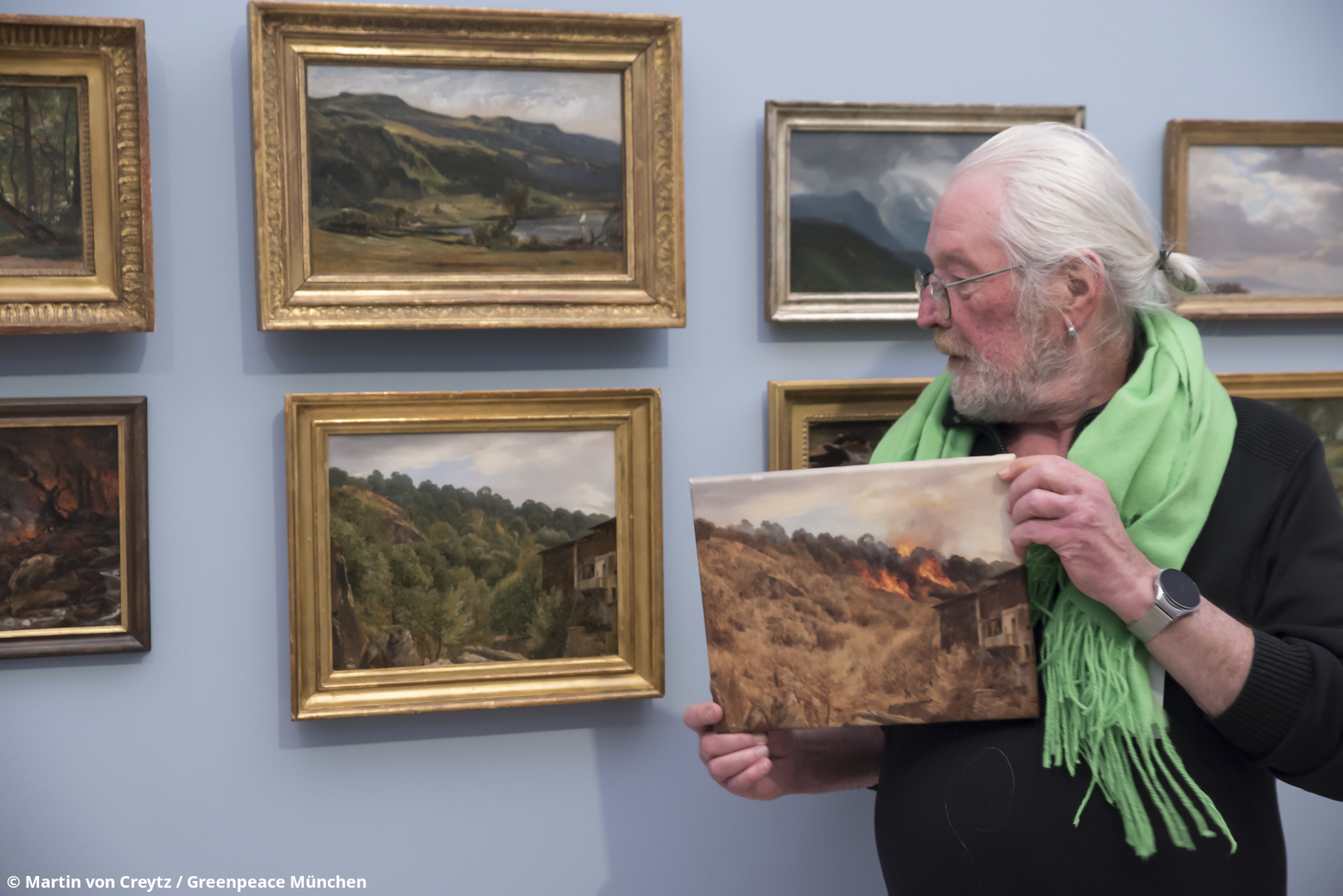Der Mensch erfährt den Klimawandel wie der Frosch im Wasserglas, er spürt die Veränderung nicht. Das Klima hat sich bereits stark verändert, wir müssen uns und unseren Lebensstil ebenfalls verändern, den neuen Gegebenheiten anpassen. Hier möchte das Klimanetz ansetzen. Wir kopieren ausgewählte Kunstwerke und verändern sie basierend auf Vorhersagen der Wissenschaft und Beobachtungen. Bei jedem Besuch des Klimanetzes im Lenbachhaus wird etwas neues hinzukommen. Gemeinsam mit Ihnen möchten Aktive des Klimanetz München diskutieren, in welcher Welt wir/Sie leben möchten.