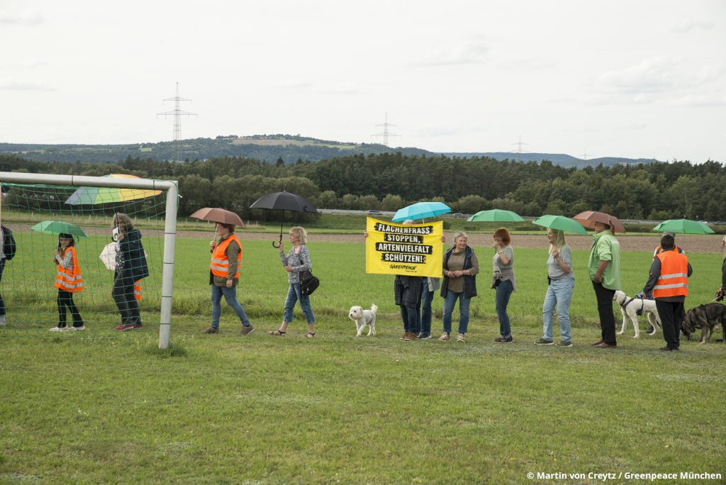 In der Nähe von Teublitz (Landkreis Schwandorf, Oberpfalz) sollen 20 Hektar Wald fallen, weil die Stadt ein neues Gewerbegebiet plant. Für den 13. September hatten die lokalen Bürgerinitiativen zu einer Demonstration gegen das Gewerbegebiet aufgerufen. Trotz des regnerischen Wetters kamen rund 250 Menschen. Auch Greenpeace München und Greenpeace Regensburg waren vor Ort und werden sich auch weiterhin für den Erhalt dieses wichtigen Klimaschutzwaldes einsetzen.